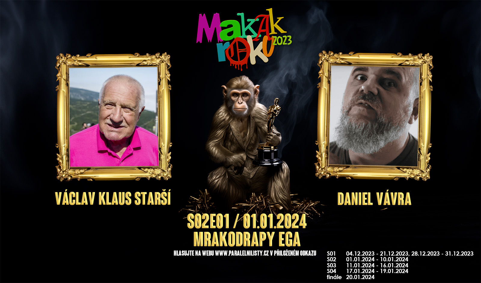 Dámy a pánové, vítáme přeživší do nového roku 2024, který je zároveň ve spojení zahájení druhého kola klání o Makaka roku. Se včerejším dnem se nám podařilo oddělit pomyslné zrno od plev, a zůstal nám do dalších kol už jen plevel, který si budeme náruživě hýčkat. Zbavili jsme se dvaceti kdysidentů, kteří od nás dostali tolik potřebný feedback a doufáme, že se do příští sezóny poučí, a udělají nějakou tu opičárnu.
